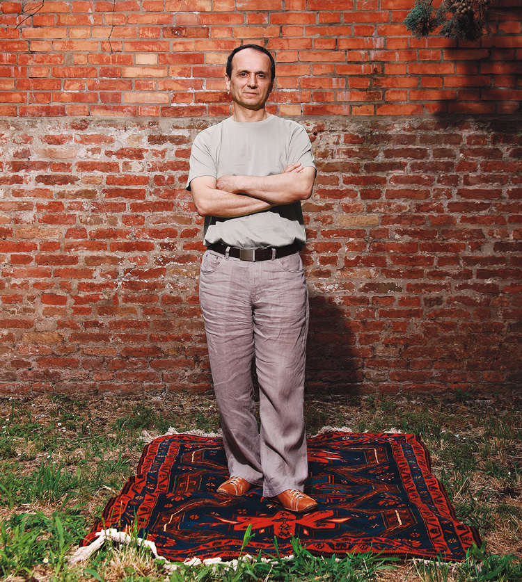 Тарлан Горчу: «У меня была задача – расшатать стабильную симметричную композицию и ввести в нее элементы асимметрии, используя фрагменты традиционного гянджинского ковра. Я взял реальный ковер XIX века, который висит у нас в музее, и постарался, не разрушая смысла, поколебать саму систему. Есть два фундаментальных элемента азербайджанской культуры – мугам и ковер. Мугам раньше подвергся деконструкции, потому что наши композиторы всегда были вовлечены в общеевропейский процесс. К ковру же до недавнего времени относились, как к священной книге. Я же решил немного поиграть с этой традицией, чтобы оживить и показать ее актуальность. Обращение к традиции в современном искусстве происходит периодически: это как приливы и отливы. Из всех представленных на биеннале национальных павильонов меня больше всего поразил уругвайский. Там представлена инсталляция, где слышен свист охотника. Я не был в Уругвае, но мне кажется, что в этом звуке чувствуется дух страны. Возникает вопрос: интересно ли это международному зрителю? Или человек другой культуры не поймет, о чем речь? Я надеюсь, что все-таки поймет».