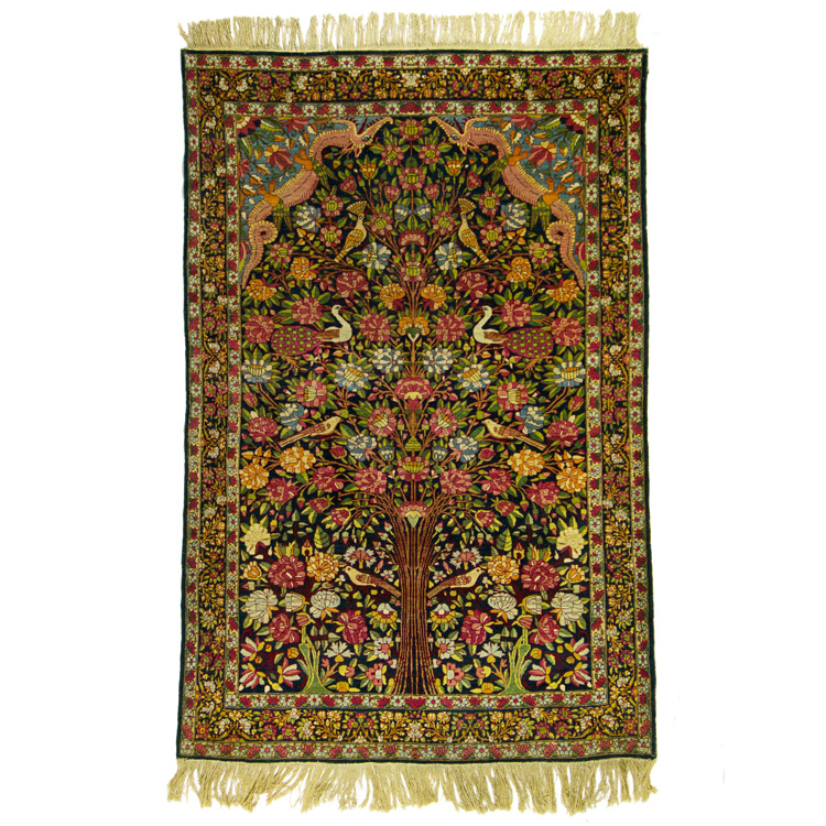 Многие из этих символов были подробно расшифрованы на выставке в Черногории. Например, один из самых распространенных мотивов – дерево (такой узор называется «гяба агадж»). На тебризском ворсовом ковре «Агаджлы» (середина XIX века) изображено древо рая, жизни, познания, разума. Также «гяба агадж» символизирует бессмертие: ведь дерево соединяет подземный мир и небеса, где течет вечная жизнь. На его ветвях часто изображают павлина с распущенным хвостом («товуз гушу») – это аллегория изобилия, благополучия и достатка. Ковер «Алпан» демонстрирует мастерство ткачей губа-ширванской школы рубежа XIX–XX веков: вытканные на нем розы символизируют богатство природы. А на ворсовом «Шихлы» из Газаха (начало ХХ века) цветет райский сад.