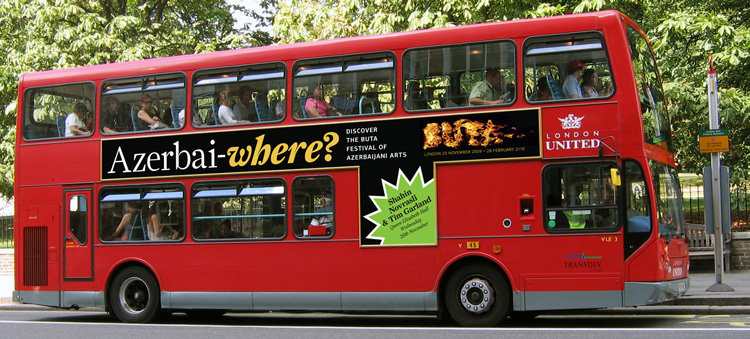 По британской столице второй месяц колесят двухэтажные красные автобусы, вопрошающие испуганных прохожих: «Азербайджан – это где?» В качестве подсказки по всему городу развешены карты, на которых культовые места лондонской столицы – Трафальгарская площадь, галерея Тate, парламент и даже Биг-Бен – расцвечены яркими абшеронскими огоньками, выжигающими на сетчатках лондонцев слово Buta. Туннели лондонской подземки испещрены вызывающими надписями: «Если вы, британцы, любите нашу нефть, вы обязаны полюбить наше искусство», «Мы сделали мистера Нобеля очень богатым человеком – мы обогатим и вас».