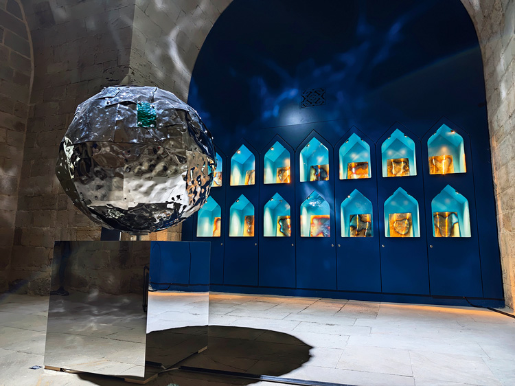 Поэтический проект Вюсали Агаразиевой «Роса. Утро, которого не было» превратил Дворец Ширваншахов в фантазийное пространство между сном и явью. Художница исследует тот хрупкий момент, когда свет едва занимается, утро еще не наступило, и мир решает, каким ему быть. В суфийской философии роса – символ того, что настоящее приходит без давления извне. Роса является тем, кто проснулся рано, и такой человек невольно попадает в круг избранных, которым посчастливилось наблюдать рождение нового дня.