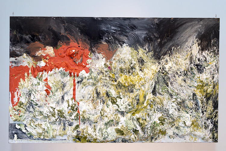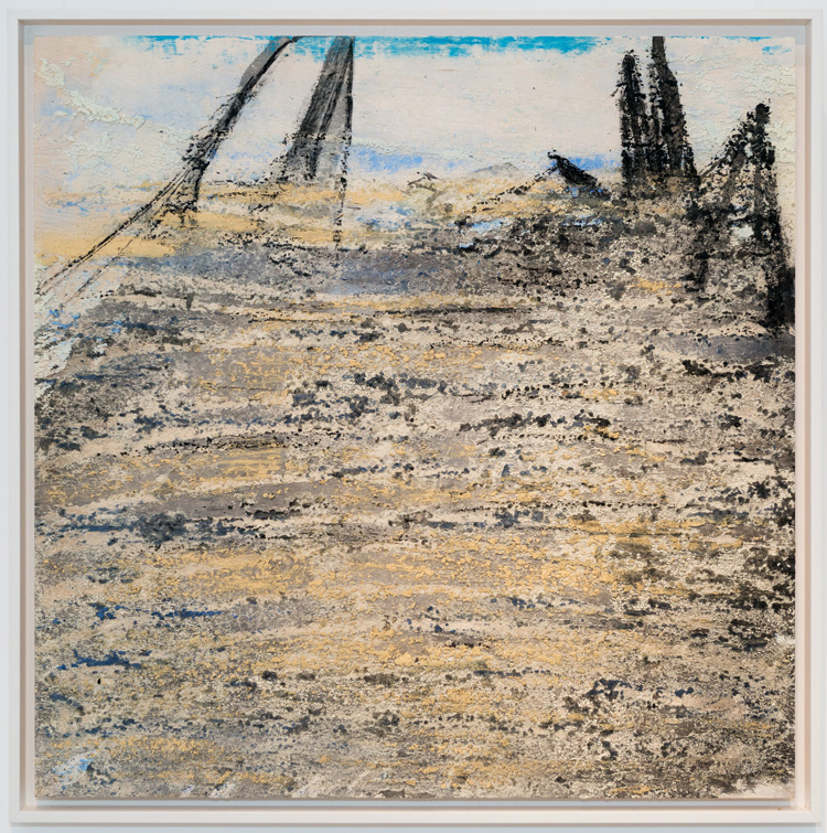 Результат рождается в том числе в процессе взаимодействия с тем или иным материалом – будь то акрил, клей, листы серебра, масло, гипс, цемент, уголь или даже отслужившая свой век дверь. Художница, позволяя веществам действовать самостоятельно, с некоторой отрешенностью наблюдает, как меняется плоскость холста. Так человек встречает природные катаклизмы: вооруженный знаниями и одновременно осознающий свою беспомощность перед стихией. Поэтому в работах Аиды всегда есть элемент тревоги, которая неизменно передается зрителю. В каждой из композиций чувствуется тонкая игра художницы, которая ловко балансирует между созданием пейзажа и спонтанностью химических реакций.