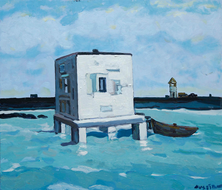 Выставка в QGallery – своего рода послание времени и пространству, признание в любви своим корням, родной земле и людям, выросшим из нее, точно деревья из известкового грунта. Художник включил в экспозицию три десятка живописных и графических работ, как созданных десятилетие назад, так и завершенных буквально накануне вернисажа. В так называемых пейзажах-настроениях живописец фиксирует звенящий воздух пустынных пляжей с бирюзовой кромкой волны. Единственные свидетели этой красоты – белые строения не всегда понятного назначения. Зрителю остается лишь догадываться, в чем тайна этих странных домиков и кто или что скрывается за их стенами.