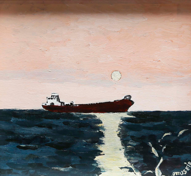 Силуэт высохшего дерева проступает на фоне неба. Далекий танкер будто застыл в оцепенении при виде розового заката. Нефтяные «качалки» в свете тревожного рассвета кажутся странными, неуклюжими существами. Каждый, кто бывал на Абшероне, моментально узнает этот пейзаж – аскетичный, выжженный солнцем и вылепленный ветрами Каспийского моря. Добавляя цветовые акценты в свободный, почти эскизный рисунок, наблюдатель и философ Мусеиб Амиров умеет зафиксировать и передать хрупкость мгновения так, что зритель слышит звуки ветра, ощущает аромат моря и жар белого солнца пустыни.