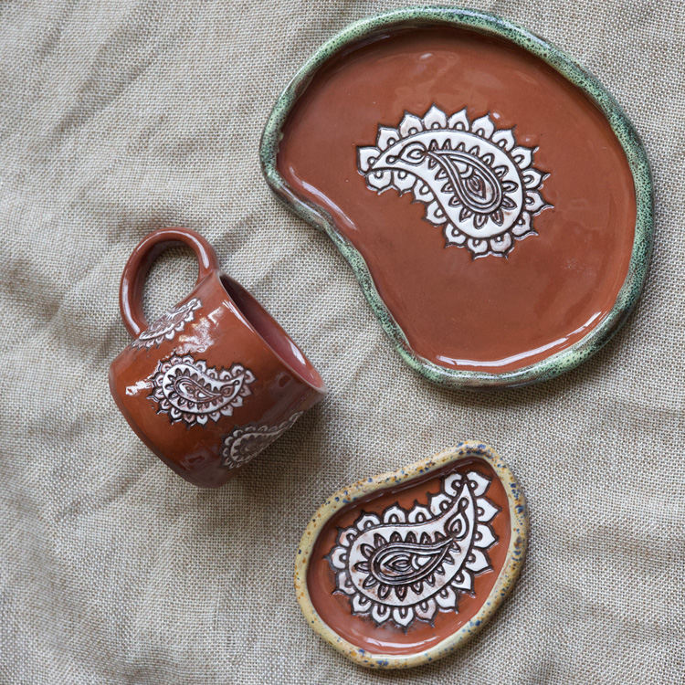 Сейчас вещи Zingirov продаются во многих бакинских магазинах, например в Ninka Cards и Handicraft, а еще в зоне вылета в аэропорту, где бутик Soroka Baku. Среди самых востребованных вещей – домашняя утварь. В Азербайджане очень любят чашки и посуду в целом. «У нас же, если честно, культ чая и еды, и еды должно быть много, она должна быть красивой». Умай делает тарелки с узорами: иногда в центре помещает цветочный натюрморт, иногда – классический азербайджанский орнамент, иногда – забавную девочку-мангу. Из такой тарелки можно есть, можно повесить на стену или превратить в хранилище сережек-колечек.