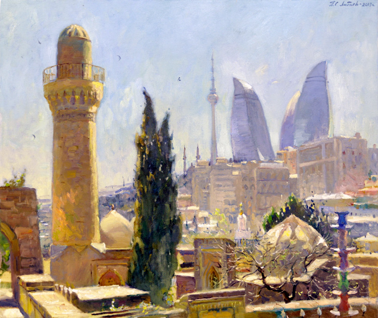 Изобразительными сюжетами, в частности, стали бакинский бульвар, прибрежная территория, Ичери шехер, исторические памятники, площадь Флага. На выставке, которая продлилась две недели, также представлена живопись художника Александра Покровского.