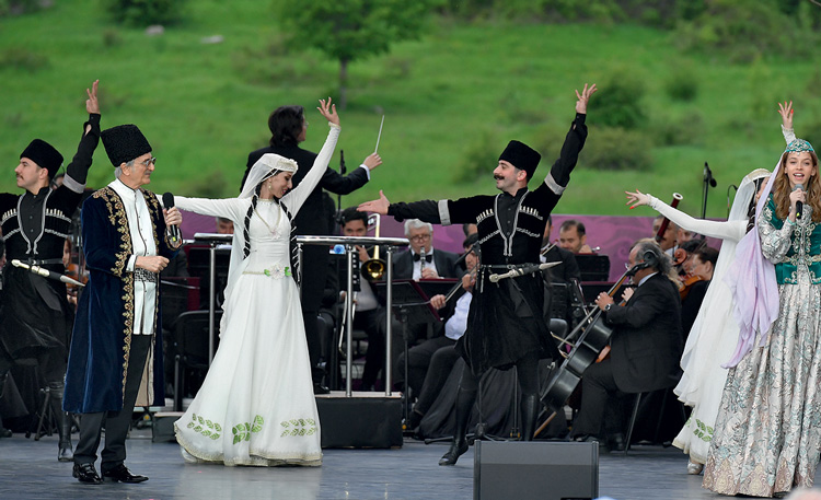 Каждый «Харыбюльбюль» имеет яркий карабахский акцент. Он проявляется и в исполняемых музыкальных произведениях, и в темах художественных выставок, а еще – в именах людей, которым посвящен фестиваль в текущем году. Самый первый, состоявшийся в 1989-м, был приурочен к 100-летию легендарного ханенде Сеида Шушинского. Нынешний же посвящен 140-летию другого великого шушинца – Узеира Гаджибейли, создателя национальной азербайджанской оперы. Именно его музыкой открылся VIII Международный фестиваль «Харыбюльбюль» – по традиции, на прекрасной горной равнине Джыдыр-дюзю.