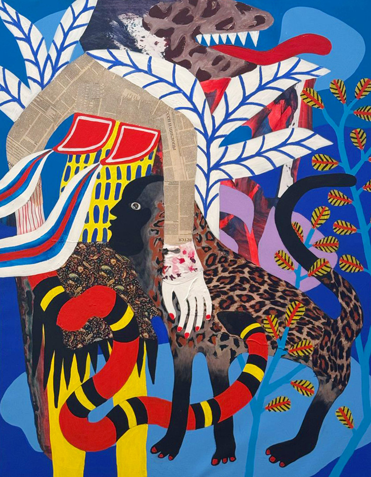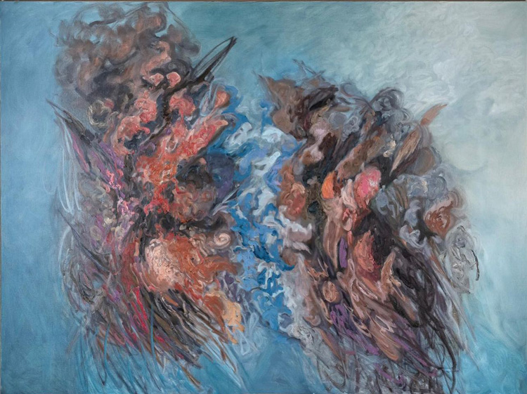 На вопрос о принципах отбора участников проекта организаторы ответили кратко: «Единственное, чем мы руководствовались, – чтобы экологическая тема была решена образно и небанально». И действительно, каждый художник интерпретирует ее по-своему. Напомним, часть авторов напрямую обратилась к теме материнства, связав экологическую проблематику с сюжетом о плодородной сущности природы. Среди них азербайджанка Рамина Саадатхан, создавшая серию сложно сконструированных коллажей «Материнская природа». «Те же невидимые нити, что связывают нас с мамой, соединяют нашу жизнь с природой», – говорит Рамина. На выставке в Бахрейне она представила коллаж «Материнское сердце». О женской сущности природы рассуждает и сербская художница Гала Чаки в живописной работе «Я могу летать»: волосы девушки превращаются в мощные ветряные потоки, закручивающие мироздание.