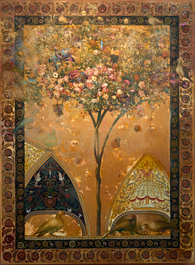 Хорватская художница Саня Прибич в инсталляции «Древо жизни» обращается к образу вселенского древа, arbor mundi – центра, объединяющего все сферы мироздания. О райской сущности природы тонко рассуждает и бакинская художница Елена Хагвердиева: ее древо жизни (из серии «Сады») прорастает на границе двух миров, разделяет собой день и ночь, кроной подпирает небо, служит домом для сказочных птиц и соблазняет людей своими плодами.