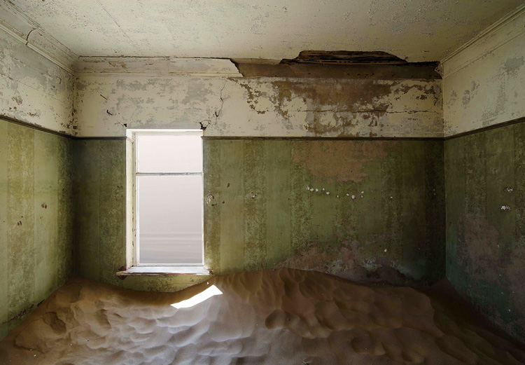 Как и другие представленные на выставке работы Гуреши – песчаные пейзажи и дюны, нарисованные графитом на фанере и кажущиеся не то обыденными пейзажами с Ближнего Востока, не то декорациями сотворения мира, – Quicken апеллирует к символическому измерению жанра, известному со времен немецких романтиков. Однако большинство работ в Gazelli Art House сфокусировано на восприятии пейзажа в условиях современности и «технологиях зрения», в которых пейзаж оказывается возможен. Сегодня это в первую очередь технологии цифровые, о чем напоминает американский дуэт Энтони Азиза и Сэмми Кучера с их серией хромогенных отпечатков с видами морских волн. Изображение на них выглядит осыпавшимся и распадающимся на пиксели. Как будто, многократно пересохраненное с потерей качества, оно лишилось ожидаемого миметического натурализма.