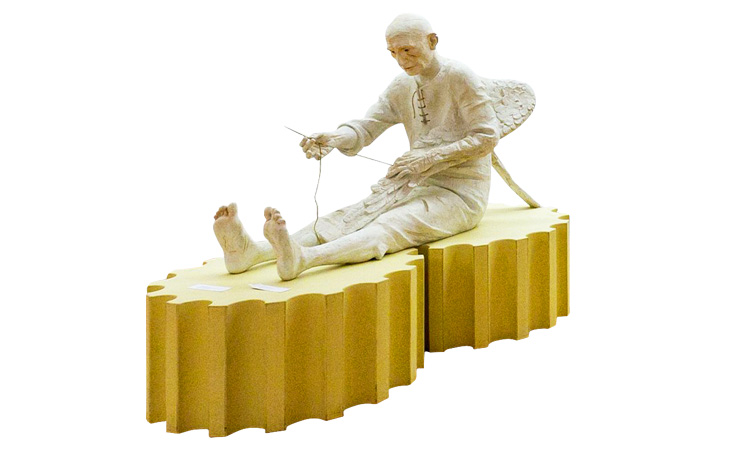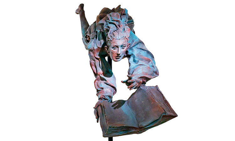 Христианские мотивы – неиссякаемый источник вдохновения для современных скульпторов. Это продемонстрировала работа Марии Бургановой «Дарование книги». Мощное духовное начало выражено здесь при помощи пластической экспрессии, достигнутой весьма интересным способом: автор соединил особенности западноевропейской средневековой скульптуры с сего-дняшним художественным языком – в первую очередь анимации.