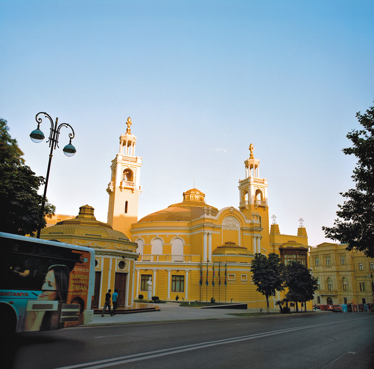 После аперитива с видом на седой Каспий и нагромождение домов Крепости, известных каждому, кто хоть раз видел фильм «Бриллиантовая рука», направляемся к Думской площади – преодолеваем старинный лабиринт улочек, скатываемся по ступенькам через какие-то (кажется, Базарные) ворота и вырываемся на простор европейской части города. Тут все по-другому: скверы и фонтаны, солидные доходные дома и бывшие пассажи. Проходим каким-то проспектом (в городе все еще не ориентируюсь плюс оглушительная жара, вызывающая странное ощущение: как будто тебя окунули в нефть) и оказываемся перед зданием консерватории. С другой стороны – Бакинский джаз-центр. Заказываю себе какой-то коктейль со льдом и под звуки анонимного тапера думаю о том, что Баку сегодня сам как коктейль: три города в одном, древний (восточная Крепость), старый (начала ХХ века) и новейший. Все смешано, но не взболтано.