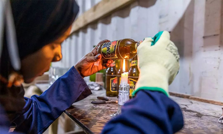 Работники Chako Zanzibar собирают пустые бутылки из-под вина. Молодые люди объезжают отели, рестораны и помойки и привозят мешки с добычей в мастерские марки. Там стеклотару осматривают, очищают от этикеток, отмывают и дезинфицируют, а затем в дело вступают мастерицы. На определенных местах каждой бутылки намечают спилы, затем нагревают ее, охлаждают и аккуратно откалывают ненужное. Остается тщательно заполировать места сколов – и можно отправлять продукцию хоть в бутики, хоть на одну из главных выставок мирового дизайна – парижскую Maison & Objet, где в этом году будет представлена марка.