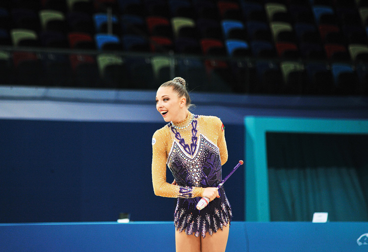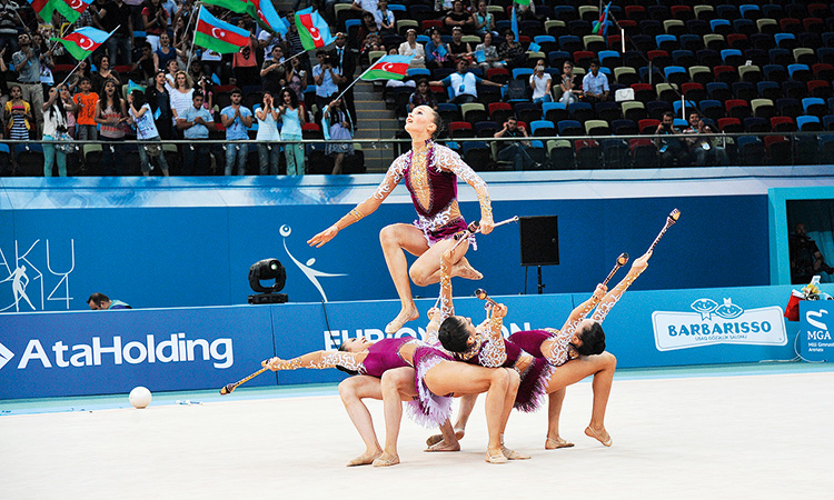 Сборная России показала на бакинском чемпионате прекрасный результат, собрав восемь золотых медалей из девяти. В индивидуальном многоборье золото выиграла абсолютная чемпионка мира Яна Кудрявцева. Второе место заняла белоруска Мелитина Станюта, а бронзовую медаль завоевала украинка Анна Ризатдинова. Лишь в групповых упражнениях с 10 булавами российские «художницы» уступили болгарским спортсменкам.