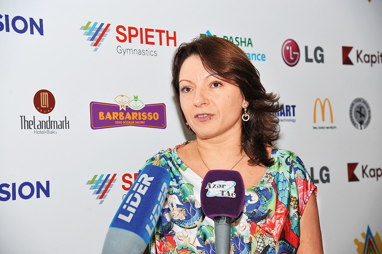 – Я всем довольна! – заявила Ирина Винер-Усманова, президент Всероссийской федерации художественной гимнастики, главный тренер сборной России по художественной гимнастике. – Очень люблю приезжать в Азербайджан, потому что здесь всегда все организовано блестяще. В этот раз я была потрясена грандиозным Дворцом спорта. Ничего подобного в мире нет! Очень красивый, очень удобный, здесь много разминочных площадок, все могли вдосталь заниматься, готовясь к выступлениям.
