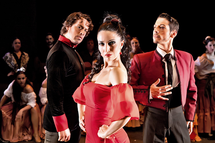 В одном компания Антонио Андраде точно следует старинным обычаям: у постановки нет хореографа. Большая часть танцев поставлена патриархом фламенко Маноло Марином, а вот номера главных героев придуманы самими исполнителями ведущих партий. Танцы смертоносной, насмешливой, убийственно сексуальной Кармен изобретены одной из лучших андалусийских танцовщиц Урсулой Морено, а пластику для сходящего с ума от любви дона Хосе сочинил Хосе Галван. Музыкальный ряд собран Антонио Андраде из мелодий Жоржа Бизе (автора оперы «Кармен») и Франсиско Мойя.