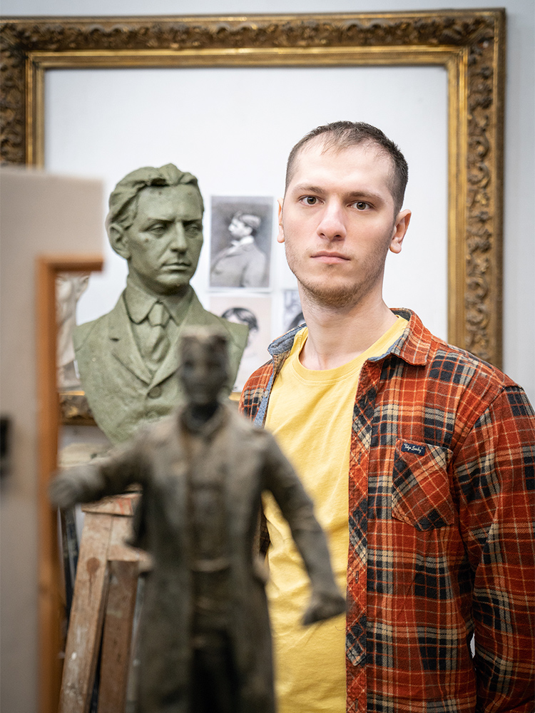 «Я люблю необычные скульптуры, те, над которыми можно размышлять. Для меня важны чувство и острота мысли. Каждый прославившийся творец вписан в свою эпоху. Если я сейчас буду работать в стиле Кановы, то никого этим не заинтересую. Можно удивлять собственной фантазией – творчество само по себе хорошая полянка для разного новенького. Возможно, мне надоели «правильные» традиционные работы, которые меня, по большей части, всегда окружали. Я вижу смысл видоизменять скульптуру, придавать ей новое значение – в обществе существует запрос на нестандартные произведения. А изучать художников, которые заняли свою нишу, полезно как минимум с технической точки зрения. Они своими работами могут подсказать, как решить ту или иную композицию, а при внимательном рассмотрении помогут даже с преодолением некоторых подводных камней в процессе лепки».