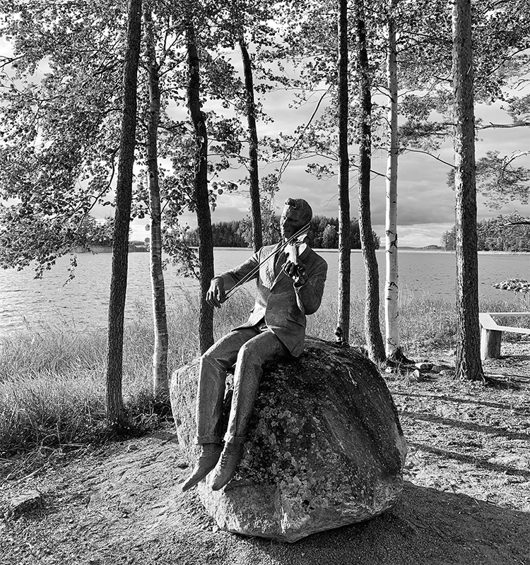«Эту скульптуру я делал для региона Южное Саво в Финляндии. Скрипач и нерпа установлены на острове Линтусало, рядом с большой паромной переправой на берегу озера Сайма. Там в последние десятилетия восстанавливают популяцию нерпы, и в основу памятника легла фольклорная песня о деревенском плотнике и рыбаке. На досуге он приходил на берег озера и играл на скрипке так проникновенно, что слушать его приплывали даже нерпы. Этот сюжет и стал композицией: скрипач сидит на берегу на натуральном валуне, а в прибрежной воде на камне – смешная усатая упитанная нерпа. Финны вообще довольно простые люди, любят природу и стремятся к тому, чтобы всё органично с ней сочеталось. Когда мы устанавливали скульптуру, помочь нам пришел губернатор региона – как все, засучил рукава, месил грязь, залезал в воду».