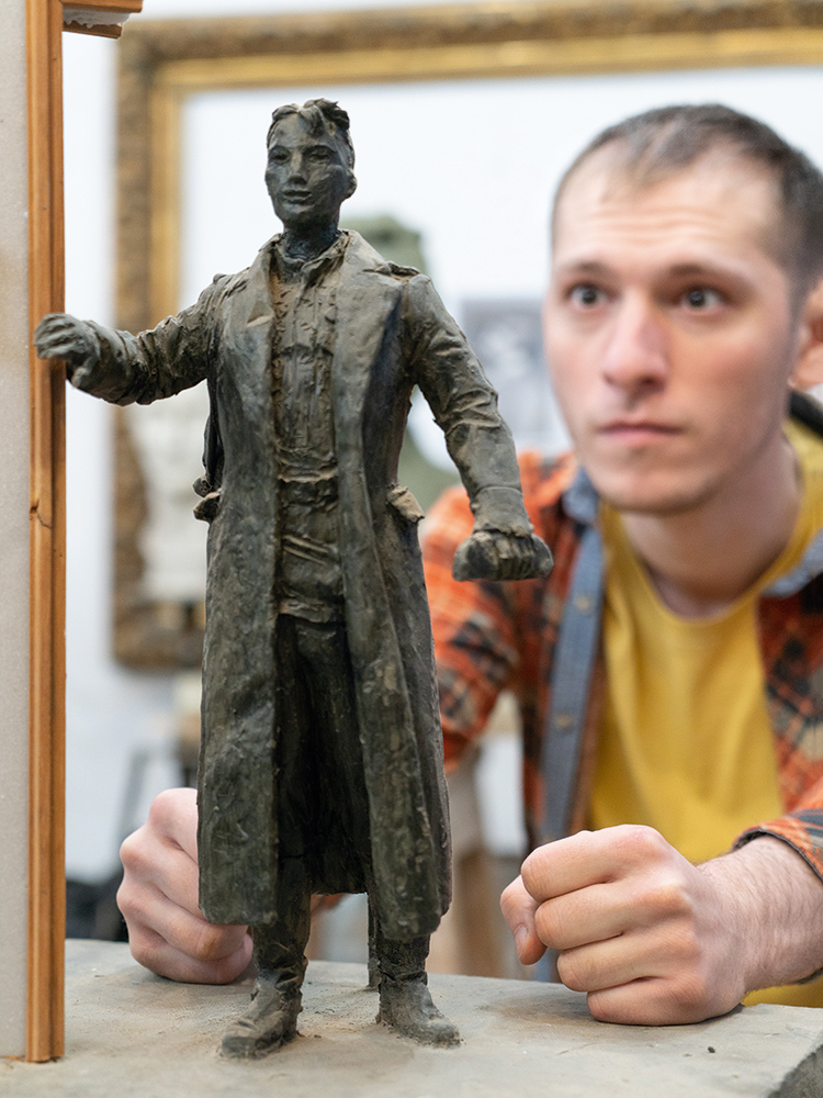 «Во время работы я впервые осознал, что мой прадед имел прямое отношение к войне. Знаете, некоторые семейные факты известны с детства, но почувствовать, что они значат на самом деле, можно только повзрослев. Прадед был танковым механиком, возглавлял группу, чинившую вышедшие из строя в боях машины. Отчасти поэтому я лепил солдата с определенным ощущением сопричастности. Тем более ценны были отзывы ветеранов, которые подходили ко мне после открытия памятника и говорили, что он очень реалистичный и что мне удалось передать те самые эмоции…»