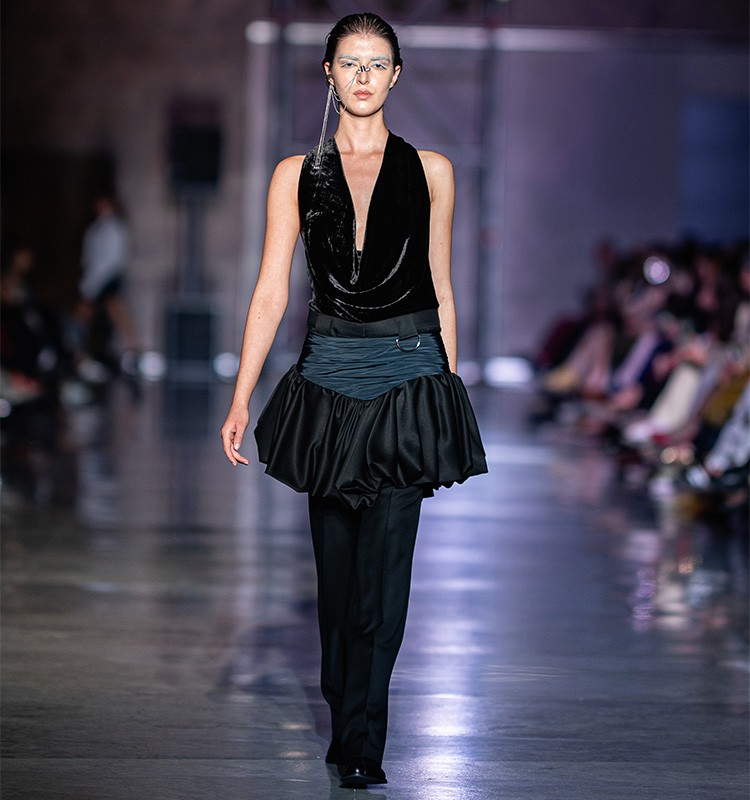 Фидан Садиг специализируется на создании авторских коллекций, в которых соединяются скульптурный крой, архитектурные формы и продуманные концепции, связанные с мировым искусством и культурой.