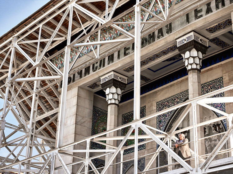 АРАЗ АХУНДОВ: Да, фасад был закрыт металлической панелью, лишь в 2014 году ее сбили. Мэр Собянин тогда был в восторге. Я как раз в эти дни там оказался и спросил: ну что, будут переделывать залы? Я очень давно мечтал о том, чтобы Азербайджан взял павильон под свое покровительство. Помните фильм «Подкидыш» 1939 года? Когда герои проезжают по площади, азербайджанский павильон виден в том виде, в каком был вскоре открыт.