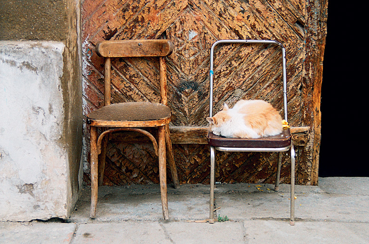 В.Ф.: Очень вкусно поесть. Потом мне очень по-бакински сказали: «Проси что хочешь!». Я сказал, что хочу съездить туда, где вырос. Потом много фотографировал там и в крепости. Вот посмотрите на снимок: старые двери с разными створками. Это тоже очень по-бакински: заменили одну половину двери, а другую оставили. Зачем трогать – она еще целая. Зачем тратить время, которое можно посвятить гораздо более важным вещам: прогулкам, например, или разговорам по душам. Вот еще фотография: пара дряхлых стульев во дворе накрепко прибита к стене – забронированные места! Именно два стула! Я давно уже понял, что Баку никогда не войдет в унылый список городов, где живут одиночки: ведь там всегда тебе найдется собеседник!