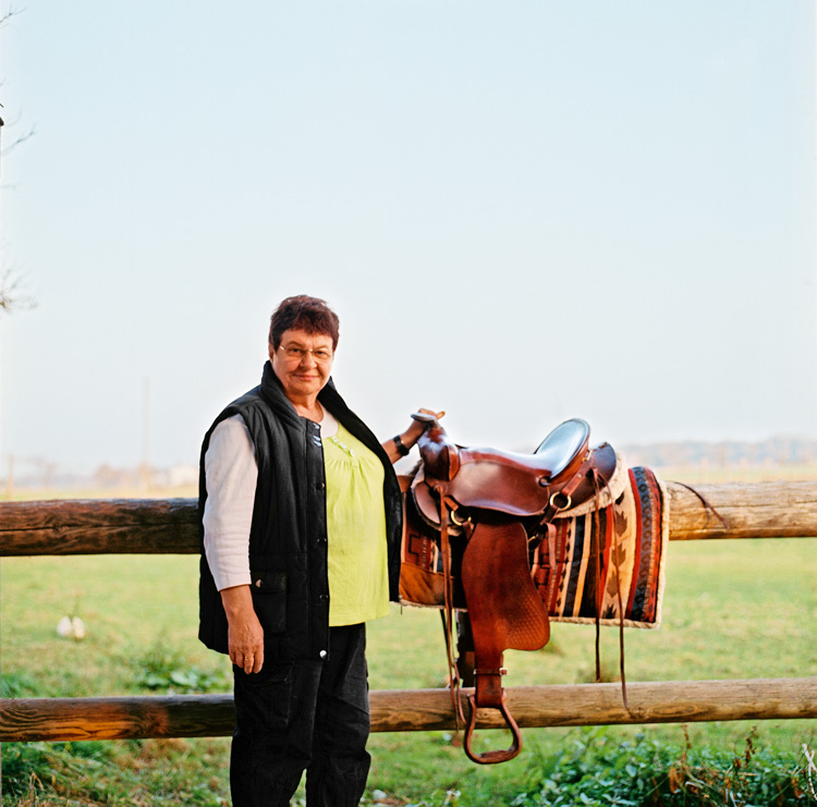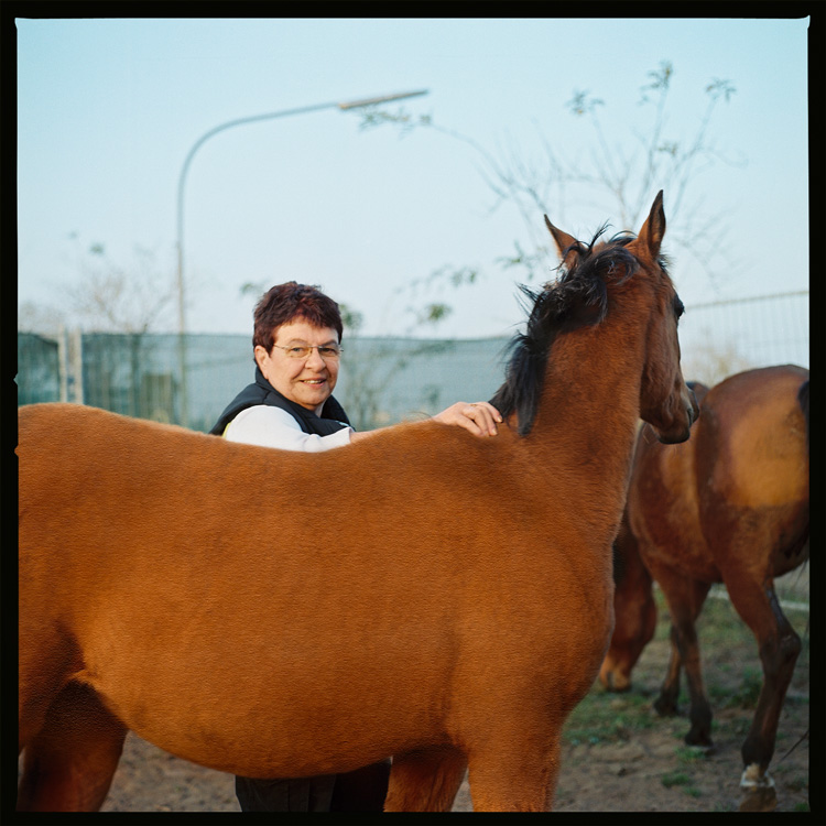 «В свои 62 года фрау Шолиан любит быструю езду. И каждый день демонстрирует ее верхом на карабахской кобыле Сирли»