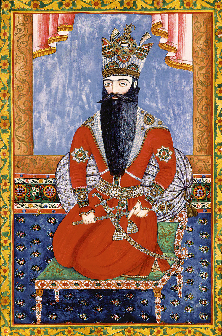 На портрете – второй шах Ирана из династии Каджаров, племянник основателя династии Аги Мохаммеда. Фатали-шах (Фетх Али-шах) правил в 1797–1834 годах: именно при нем был заключен Туркманчайский мирный договор, изменивший историю Кавказа и Персии. Также он был известен как покровитель литературы.