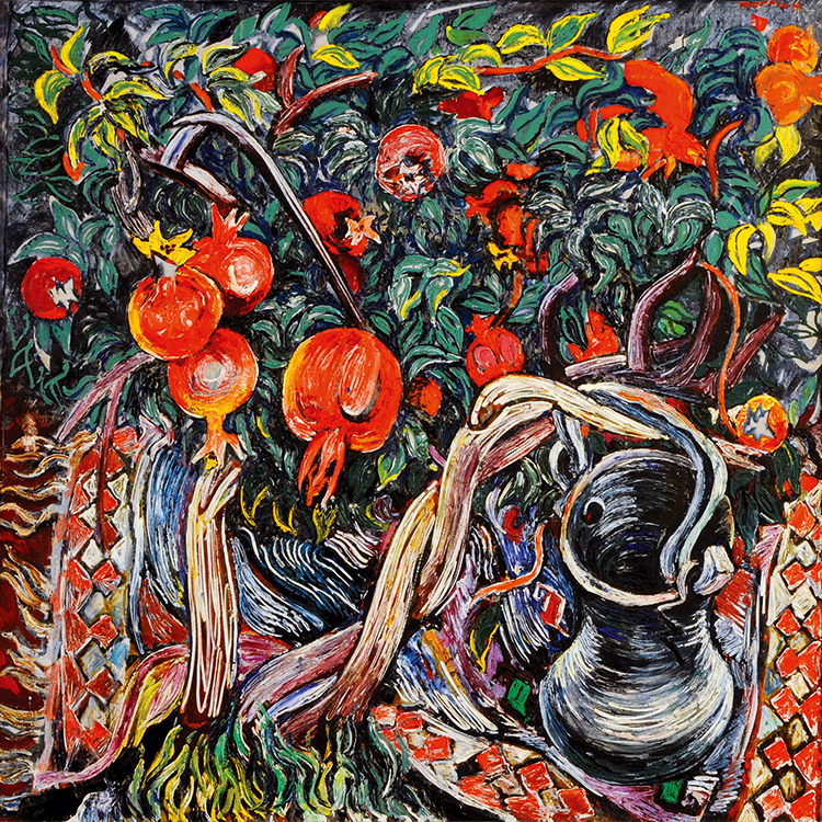 Однажды, попав в Геокчай, отец обнаружил там сады крупных красных гранатов. Они были потрясающими, просто воплощенный символ плодородия. Папа был ошеломлен и восхищен их сочностью, цветом и тем, какую красоту может создать природа. Картину он писал за один сеанс, алла прима – это быстрая техника масляной живописи, при которой не надо ждать высыхания краски, прежде чем наносить новый слой. Папа и меня приучил работать именно таким способом, потому что надо спешить выразить свои эмоции именно тогда, когда они тебя настигают. Если не дать им вовремя выплеснуться, они выдохнутся, станут блеклыми и неинтересными. Так же поступали французские импрессионисты.