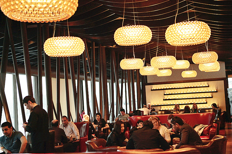 Очень стильный лаунж-клуб на верхнем этаже отеля Park Inn. Приглушенные темные тона в интерьере, живой джаз и панорама ночного Каспия. Кухня: японская, азиатская. Средний счет на человека – 20–40 манат.