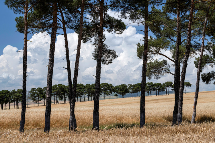 В десяти километрах восточнее Шамахи среди золота пшеничных полей тянутся ряды высоких сосен. Посаженные десятилетия назад, они защищают поля от степных ветров – проверенный способ сохранить землю живой. Человек посадил эти деревья как стражей урожая, а природа превратила их в дом для птиц: в сосновых кронах гомонят воробьи, перекликаются галки, прячутся голуби и сороки.