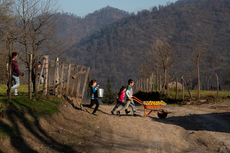 Тут картина совершенно иная – внезапно мир наполнился красками, будто напился живительной влаги. Лесистые Талышские горы соразмерны человеку, они не давят, наоборот, будто придают сил, летом радуют глаз насыщенными оттенками зеленого, а теперь пора благородного увядания, завершения цикла. Мелькают за окном чайные плантации, разноцветные ульи, озера, дворы, где люди заняты каждодневной домашней работой.