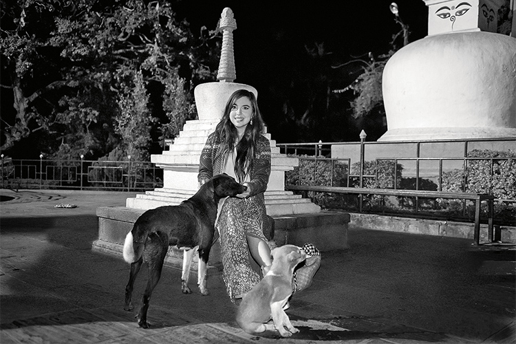 Едва мы приземлились в Катманду, нас сразу же повезли к священным ступам. Вечерело, мы ехали по практически неосвещенным улицам. Было видно, что после землетрясения многое до сих пор не восстановлено. По дороге гид рассказывала, что возле одной из ступ, Сваямбунатх, живут обезьяны; это место в народе так и называется – Обезьяний храм. Нас предупреждали, что не стоит слишком пристально смотреть на них, потому что они этого не любят и могут напасть. И вообще, ведут себя там как хозяева жизни: пытаются залезть в сумки, выхватывают еду. Но обезьяны, к счастью, были мирные, нас не трогали, и мы их тоже не трогали.