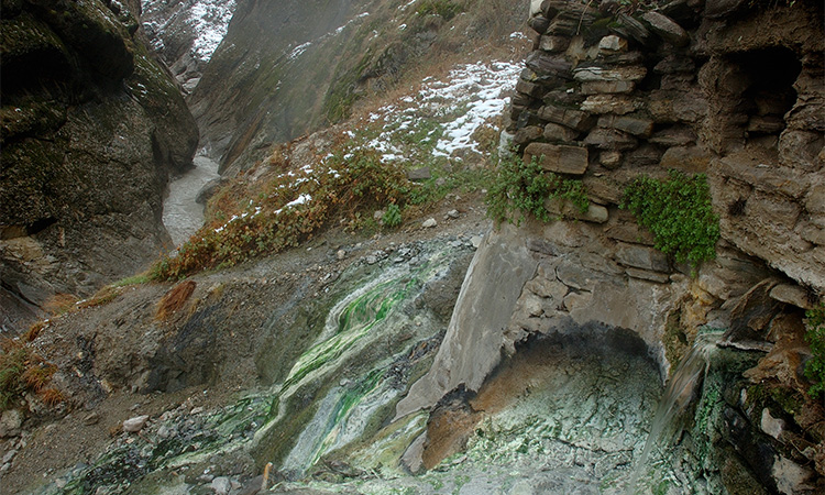 В скале у сероводородных источников давным-давно соорудили небольшие баньки и вырубили каменные ванны – вода падает в них из расселины и вытекает через отверстие в реку. После купания можно продолжить путь: пройти по ущелью, подняться по склону Тенгинского хребта, выйти на альпийские луга и в конце концов оказаться у крепости Чыраг-Гала.