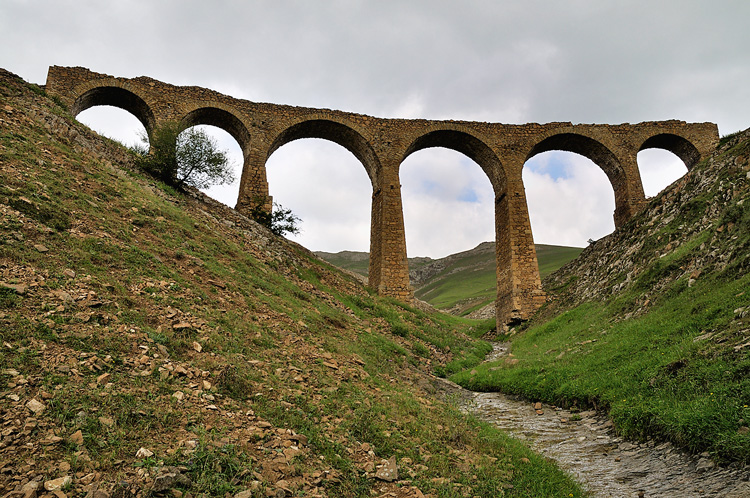 По этому арочному мосту проходила первая в Азербайджане железная дорога – гедабекская узкоколейка, построенная фирмой братьев Сименс в 1884 году. Немецкие промышленники превратили Гедабек в настоящий индустриальный район: на их медеплавильных заводах трудилось больше десяти тысяч человек, и производили здесь лучшую во всей Российской империи медь. Железная дорога как раз и соединяла заводы и медные рудники. Только представьте себе, первоначально вагончики тянули даже не паровозы, а их предшественники локомобили – «огненные телеги», машины с паровым двигателем!