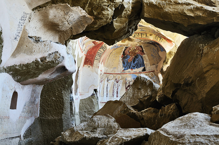 Фрески в горных пещерах заповедника Кешикчи относятся к XII–XIII векам. Пещерные храмы этой эпохи существуют в разных странах Южной Европы и считаются редким достоянием, нуждающимся в особом уходе. Агстафинские фрески этот уход получили не так давно: в советские времена рядом был военный полигон. В пещерах, прямо поверх рисунков, оставляли надписи, в камнях видны следы пуль… Но сейчас в заповеднике Кешикчи полным ходом идет реставрация.