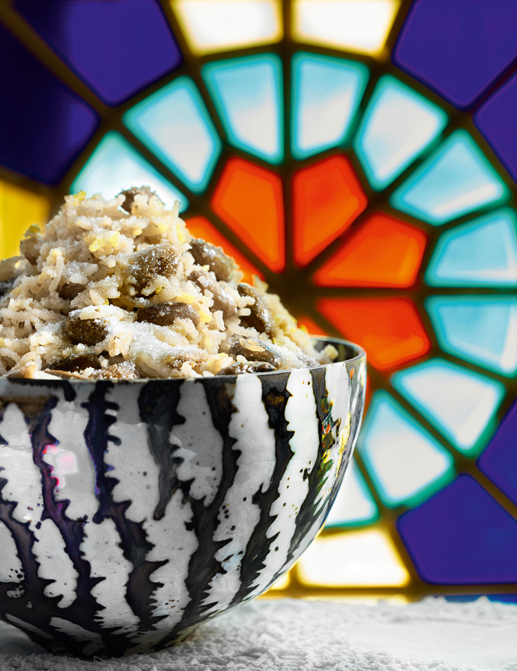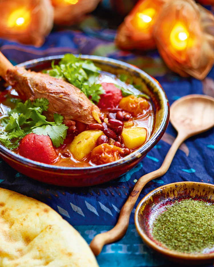 В нашей версии свежее лобио со стручковой фасолью из закуски превращается в полноценное блюдо: в нем и болгарский перец, и помидоры, и пряная зелень, и топленое масло, и даже яйца, из-за которых лобио оказывается своего рода гибридом кюкю. В другом рецепте знаменитый бакинский красный салат (сладкий говсанский лук, помидоры, зерна граната) становится еще краснее благодаря красной же фасоли. Ордубадская фасолевая похлебка – прекрасное решение для промозглого зимнего вечера! – оказывается необычным супом: нахчыванский город-сад знаменит своими фруктами, и в суп здесь добавляют и алычу, и айву, и мяту (ну и ягненка с картофелем, само собой). Наконец, плов с фасолью мы предлагаем тоже особый. Лобио-плов готовят в разных регионах Азербайджана, но только в Шеки – с сахаром и грецкими орехами (и фасоль понадобится особая – пестрая «пинто»).