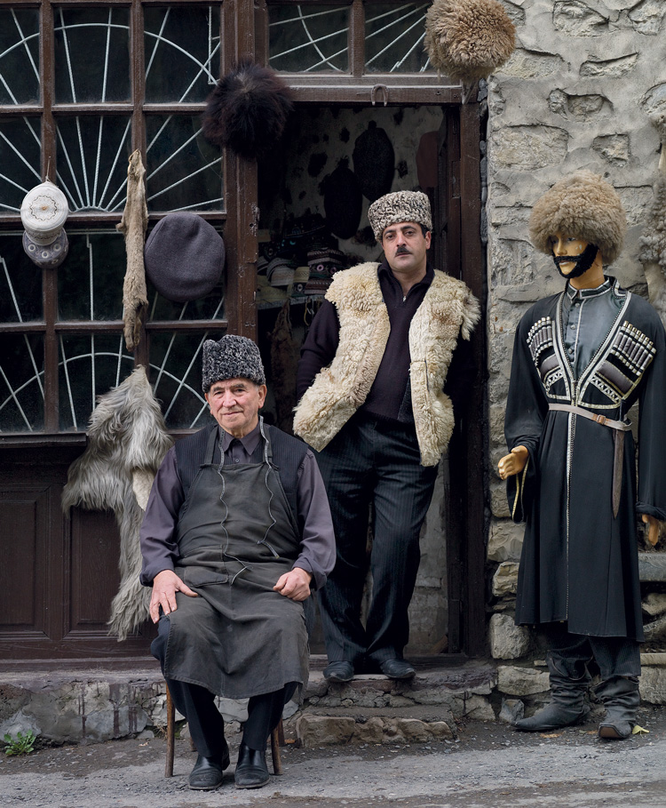 Когда-то по шапке можно было рассказать о человеке многое. У каждого сословия был свой головной убор, и в каждом регионе он имел свои особенности. В Азербайджане шапка рассказывала, в каком районе человек живет, чем занимается, к какому социальному слою принадлежит, каков его достаток и даже стар он или молод. Молодые мужчины носили более светлые шапки, пожилые – темные. Красивый оттенок и мягкость шапки говорили об экономическом благополучии ее обладателя. Форма шапки и материал, из которого она была сделана, сразу выдавали профессию. Чабаны в Азербайджане, например, всегда ходили в лохматых шапках, их шили из шкуры козла или грубой овчины. Шапка чабана должна была согревать голову и защищать лицо от ветра зимой, а летом оберегать от палящих солнечных лучей. Простолюдины носили обычные шапки из грубой овчины. Богатые люди – папахи из дорогого каракуля. Ханская шапка – очень высокая – прежде шилась из каракульчи тончайшей выделки. В мастерской Агиля Курбанали оглу ханская шапка тоже есть, но в качестве украшения лавки, а потому сшита она из искусственного меха.
